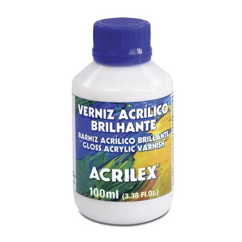 Verniz Acrílico Brilhante Acrilex é à base de água, indicado para dar acabamento brilhante em pinturas artísticas em tela ou pinturas artesanais em madeira, papel, cortiça, cerâmica, gesso, metal e isopor. Pode ser aplicado sobre tinta acrílica para Tela, tintas plásticas e tintas acrílicas para artesanato depois de totalmente secas. Deve ser aplicado em camadas finas, sem excesso.