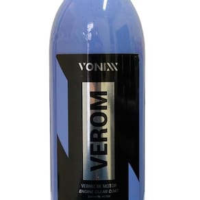 produto à base dágua que protege, dá brilho e renova todas as superfícies existentes no cofre do motor, como partes metálicas, plásticas, superfícies pintadas e mangueiras de borracha. O produto forma um filme que penetra em locais difíceis e adere em todas as superfícies citadas. Verom é resistente a altas temperaturas e tem durabilidade de até quatro meses. Também pode ser utilizado em chassis e caixas de rodas, proporcionando os mesmos benefícios de sua aplicação no motor. Diluição pronto uso. Informações adicionais