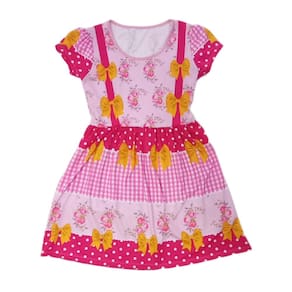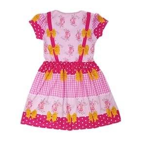 O vestido é todo estampado, inclusive os detalhes como os laços.