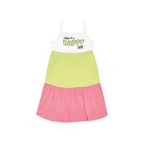 Um vestido a cara do verão com conforto, leveza e estilo. Confeccionado em Meia malha possuindo três cores Branco, Amarelo Lumi e Rosa com a estampa “Tenha um dia feliz” em glitter. Perfeita para os dias mais quentes, garantindo todo frescor e charme para a sua menininha.\n