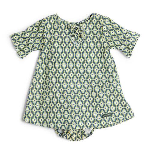 Esse vestidinho é pura gentileza mesmo com as menininhas. Confeccionado com tecido 100% algodão, muito, muito macio. Na gola tem um lacinho, as manguinhas são soltinhas tipo sino e acompanha uma delicada calcinha na mesma estampa: conjunto perfeito.