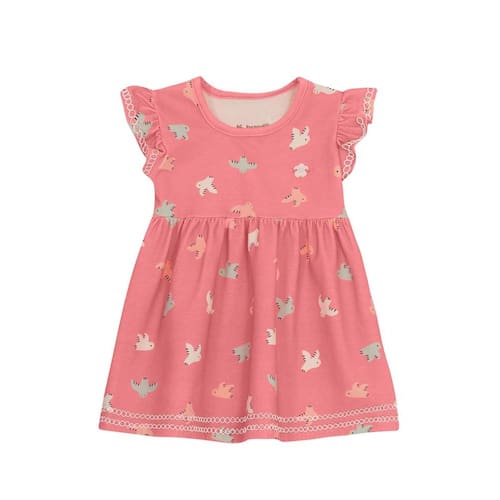 Encante-se com o vestido bebê menina da Brandili, confeccionado em cotton macio e leve. Com uma adorável estampa colorida de passarinhos, este vestido apresenta gola redonda e mangas curtas, garantindo conforto e frescor para os dias mais quentes. As pregas proporcionam um efeito rodado encantador, ideal para qualquer ocasião. Combine com um laço no cabelo e sapatinhos para um look irresistível que fará sua pequena brilhar!