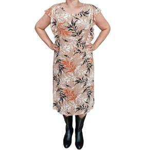 Vestido Biografia MC Estampado Plus Size Bege.