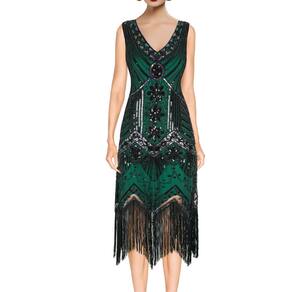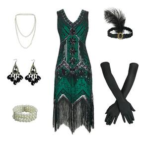 BONGZUO Vestido feminino estilo melindrosa anos 20, vintage, renda com franjas, Gatsby, conjunto de acessórios dos anos 20 (Z3722GN, 2GG)