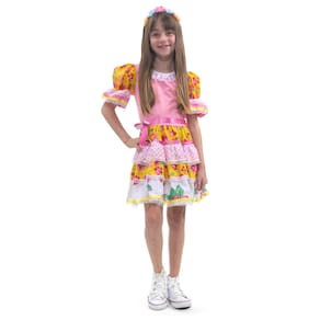 Este vestido é confeccionado com amor e cuidado, utilizando tecidos de alta qualidade para garantir o conforto das crianças enquanto dançam quadrilha e se divertem. Seu tom rosa e amarelo traz uma delicadeza encantadora, combinando perfeitamente com o clima festivo.