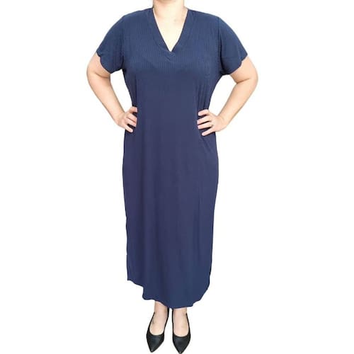 O Vestido Canelado Rodher Plus Size Azul é aquele tipo de peça prática que não abre mão do estilo.