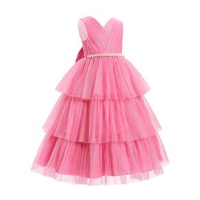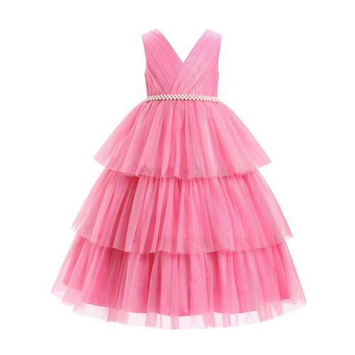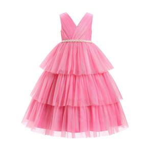 Vestido de festa de aniversário para meninas, sem mangas, glitter, imitação de pérolas, tule em camadas, tutu, babados, casamento, florista
