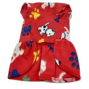 Vestido confeccionado em tecido soft; Laço na cor do tecido; Cor: vermelha com estampa de cachorrinhos; Ideal para todas as ocasiões, seu pet vai amar; Extremamente gostoso, macio, leve mas muito quentinho; Lavável em maquina e a mão. Medidas aproximadas: 34 cm de comprimento, 44 cm de circunferência tórax, 27 cm de circunferência de pescoço. Marca: Não Informado