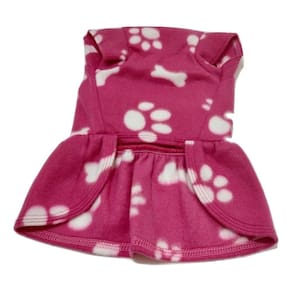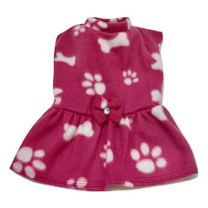 Vestido confeccionado em tecido soft; Laço na cor do tecido; Cor: rosa com estampa de patinhas brancas; Ideal para todas as ocasiões, seu pet vai amar; Extremamente gostoso, macio, leve mas muito quentinho; Lavável em maquina e a mão.Tamanho: EGMedidas aproximadas: 47 cm de comprimento65 cm de circunferência tórax42 cm de circunferência de pescoço. Marca: Nica pet