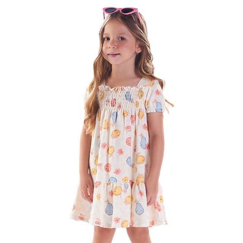 HUMMM! Pêssego, pera ou maçã? Impossível resistir a uma saladinha de frutas como está aqui. Confeccionado em cotton na cor digital coral, nosso vestido saladinha de frutas traz a estampa que é sucesso entre as mamães e as pequenas fofurinhas. O vestido que é leve e fresquinho, é perfeito para o dia a dia ou momentos especiais\n