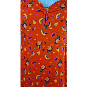 Com estampa vibrante de abacaxis sobre fundo laranja e confeccionado em viscose 100%, o modelo garante um toque suave na pele e caimento leve que valoriza o corpo com conforto.