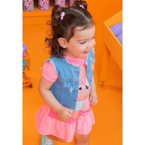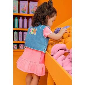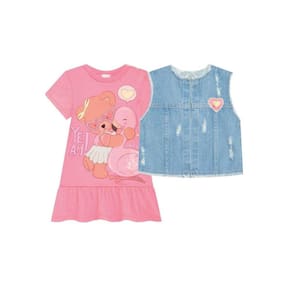 Vestido em Meia Malha e Colete em Jeans Arkansas Kukiê