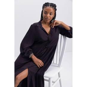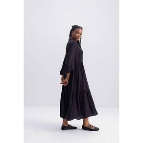 Este vestido feminino é uma escolha versátil e elegante para complementar seu guarda-roupa. Projetado com recortes em camadas, ele adiciona um toque de sofisticação ao seu visual. Feito com tecido de alta qualidade, oferece fluidez e conforto, permitindo liberdade de movimento. As mangas longas são ideais para várias estações do ano, e a abertura frontal por botões proporciona praticidade ao vestir, além de permitir ajuste no decote conforme sua preferência. Adicione esta peça ao seu closet e destaque-se com estilo e qualidade. Marca: Não Informado