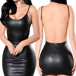 Confeccionado em material sintético com acabamento brilhante que lembra o couro, o modelo possui alças finas e um ousado decote nas costas, garantindo um ajuste que valoriza as curvas do corpo. Seu tecido é leve, pesando aproximadamente entre 84g e 87g, o que proporciona liberdade de movimento. É o look perfeito para festas, baladas ou eventos noturnos onde a elegância e a ousadia se encontram. Combine com saltos altos para um estilo fashion e sofisticado que não passa despercebido.