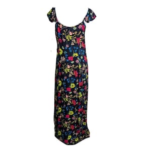 Com estampa floral charmosa e modelagem longa, o vestido valoriza a silhueta de forma natural.