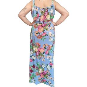 Vestido Feminino Longo Floral Rutilan Alça Babado.