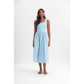 Encante-se com o vestido midi feminino Essendi, uma peça que une estilo e conforto. Confeccionado em ribana canelada, ele apresenta mangas estilo regata e um delicado decote em U, que valoriza a silhueta. As pregas na cintura criam um efeito rodado, perfeito para qualquer ocasião. Ideal para compor looks elegantes ou casuais, combine com sandálias ou tênis para um visual despojado. Sinta-se confiante e radiante com essa escolha única! Marca: Não Informado