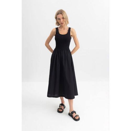 Vestido feminino midi em ribana Essendi - G - Preto - XG
