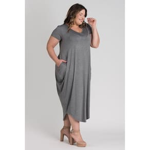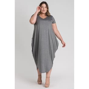 Vestido Feminino Plus Size Amplo Comfy Bolsos Laterais - Serena - Mescla - G5