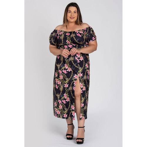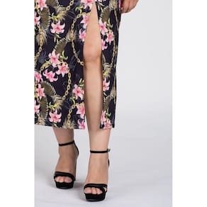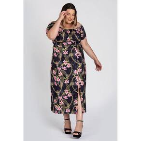 Vestido feminino plus size elaborado em malha confort. Peça com boa elasticidade, leve, macia ideal para os dias de verão. Possui estampas diferenciadas, detalhe em costura que na parte do busto e na parte da frente abaixo, que finaliza com abertura/fenda proporscionando aquele diferencial a peça e ao seu look.