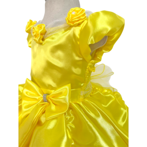 Deslumbre-se com este maravilhoso Vestido Infantil Princesa Amarelo, confeccionado em cetim de alta qualidade. Com um toque sofisticado e delicado, o vestido traz flores adoráveis tanto no ombro quanto na saia, criando um visual romântico e encantador para a sua pequena.