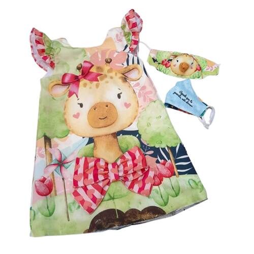 Vestido em crepe.Acompanha máscara. Super confortável com estampas modernas e perfeitas para todas as ocasiões. As peças possuem um aroma maravilhoso infantil e antialérgico, prezando maciez e conforto para as crianças.