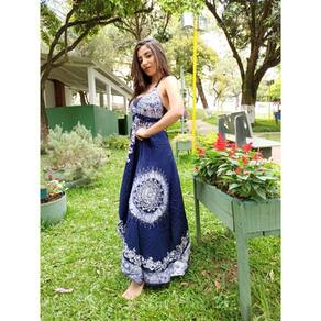 Vestido indiano longo pode ser bordado ou estampado é perfeito pra quem quer ousar no look com os seus decotes no busto e nas costas.