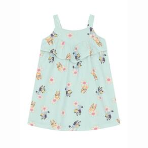Vestido infantil menina com estampa rotativa da Bluey, a cachorrinha que transforma cada dia em uma grande aventura cheia de brincadeiras e imaginação. Com mangas regata e decote quadrado, o vestido traz detalhes em babado que dão leveza e movimento, perfeito para acompanhar a energia e a alegria das pequenas exploradoras. Confeccionado em meia malha leve e confortável, é a escolha ideal para dias repletos de diversão e descobertas. Um look que inspira brincadeiras sem fim e muitos sorrisos, não deixe de garantir para sua pequena!