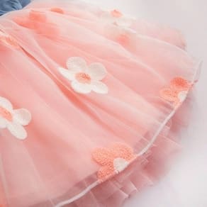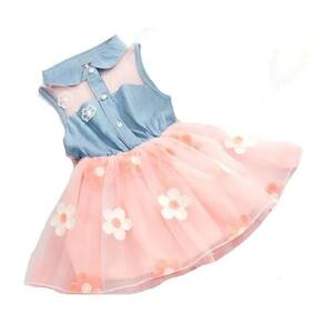 Vestido Infantil Menina Festa De Brim Com Tule Florido - Rosa - 6-9 meses