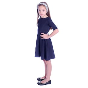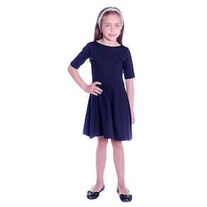 Vestido infantil meia manga decote canoa, preto, cor clássica, em tecido LIGHT CO2 biodegradável (fio AMNI SOUL ECO, o primeiro fio de nylon biodegradável do mundo), com fator de proteção solar 50FPS+ UVA e UVB.