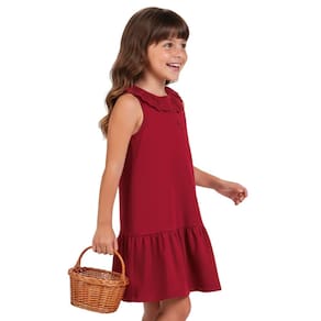 Vestido Infantil em tecido leve e estruturado, ideal para eventos especiais e momentos cheios de charme. O modelo sem mangas possui gola bordada estilo babado com detalhe vazado delicado, além de fechamento frontal com botões.