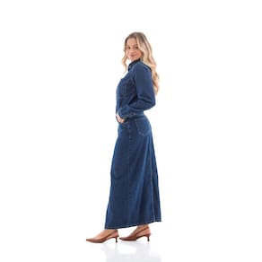 O vestido jeans é a peça essencial que combina estilo e conforto. Feito com denim de alta qualidade, ele apresenta um design versátil que pode ser facilmente adaptado a diferentes ocasiões. Com uma modelagem que valoriza a silhueta e detalhes como botões frontais, bolsos e uma leve cintura marcada, o vestido garante um visual moderno e descontraído. Perfeito para compor looks casuais, ele pode ser combinado com tênis, sandálias ou botas, além de acessórios que dão um toque especial. Uma peça atemporal que nunca sai de moda.