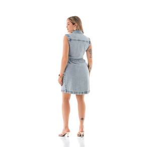 Confeccionado em jeans com elastano, este vestido possui abotoamento frontal e comprimento acima do joelho. Com caimento perfeito e confortável, é uma peça atemporal que combina com looks do dia a dia ou ocasiões especiais.