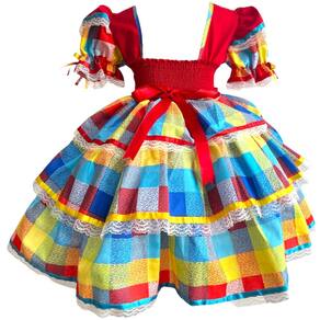 Confeccionado com materiais de qualidade, o vestido possui cores vivas, babados, laços e detalhes tradicionais que tornam a peça ainda mais encantadora. Ideal para quadrilhas, festas escolares, arraiais e eventos temáticos.