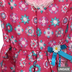 Vestido Junino Infantil GG Deixe as pequenas ainda mais lindas e preparadas para o arraial com o Vestido Junino Infantil GG! Feito em 100% poliéster estampado com flores, esse vestido combina conforto, leveza e um visual tradicional, sendo perfeito para festas juninas, quermesses, apresentações escolares e eventos temáticos.\nO vestido traz cores vibrantes e detalhes delicados, garantindo um look caipira autêntico e encantador. Seu tecido leve proporciona liberdade de movimento, ideal para dançar quadrilha e aproveitar cada momento da festa com alegria. Para um toque final, combine com fitilhos no cabelo, botinhas e acessórios típicos para um visual completo e cheio de charme!\nEspecificações: Tamanho Disponível: GG (80x50cm). Disponível em cores e modelos. Marca : LIBELULA Tipo de material : Poliéster Cores ou Estampa : Dimensões do Produto : 80 X 50 X 0,5 CM Dimensões da Embalagem : 80 X 50 X 0,5 CM Peso Bruto (Gramas) : 0.152 O que vem na Embalagem: 1 Vestido GG