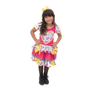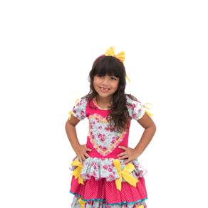Vestido Junino Infantil Rosa Florido Caipira com Tiara