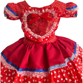 Confeccionado com materiais de qualidade, o vestido possui cores vivas, babados, laços e detalhes tradicionais que tornam a peça ainda mais encantadora. Ideal para quadrilhas, festas escolares, arraiais e eventos temáticos.