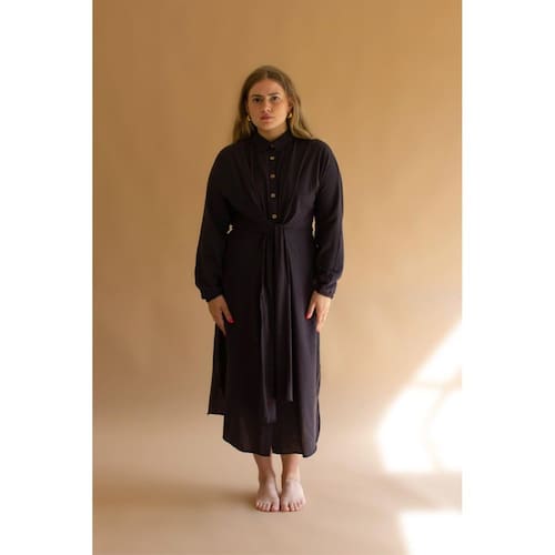 Vestido KALALOU de manga comprida com botões e gravata frontal - Midnight