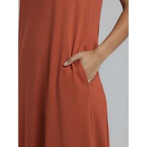 Vestido Longo Aveloz Viscolycra Soltinho com Bolso Ferrugem - Terracota - UN
