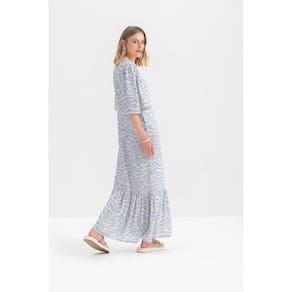 Envolva-se na sofisticação deste vestido longo feminino da marca Essendi, confeccionado em viscose com uma estampa digital exclusiva. As mangas flutuantes adicionam um toque de leveza e movimento, enquanto o decote em V destaca seu charme feminino. A abertura frontal por botões traz praticidade e estilo, permitindo versatilidade em seu vestir. Perfeito para ocasiões especiais ou um passeio casual, este vestido é facilmente combinado com suas jóias favoritas e um par de sandálias. Marca: Não Informado