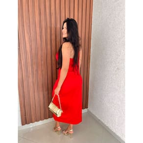 Vestido Longo Frente Unica Detalhe Boho Chique Crisconf - Vermelho - G