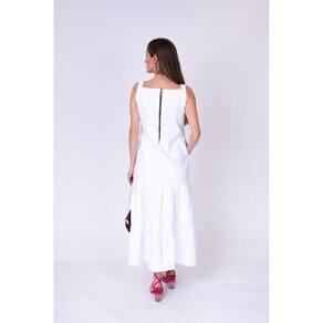 Vestido Longo Sarja, possui bolso lateral na frente, zíper nas costas, é mais justo na parte de cima e soltinho na parte de baixo, possui alça grossa. Sem lycra. Este é um vestido que traz charme e é fácil de usar em muitas ocasiões. O contraste do branco com o zíper preto é um destaque interessante o que facilita também na escolha dos acessórios. Observação: a cor das peças nas fotos pode variar ligeiramente de acordo com o seu monitor ou telefone e por serem tiradas em estúdio ou com luz natural. Código do produto: HBNUH9 (INTERNO) Preço de venda: 352,00 | 320,00 | 272,00 Marca: Khalli