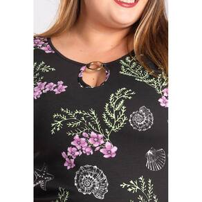 Vestido em malha viscose estampada com flores e folhas, com argola formando um lindo detalhe no decote, ombros vazado. Malha com elastano proporcionado mais conforto e ajustando ao corpo. Modelo ideal para todas as ocasiões.