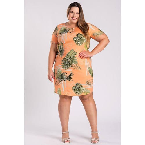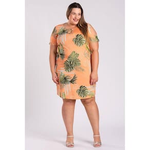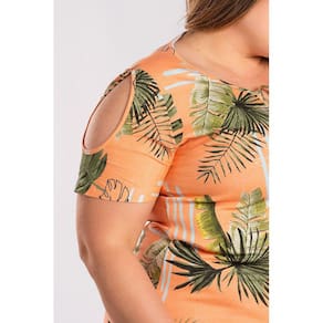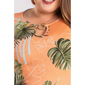 Vestido em malha viscose estampada com flores e folhas, com argola formando um lindo detalhe no decote, ombros vazado. Malha com elastano proporcionado mais conforto e ajustando ao corpo. Modelo ideal para todas as ocasiões.