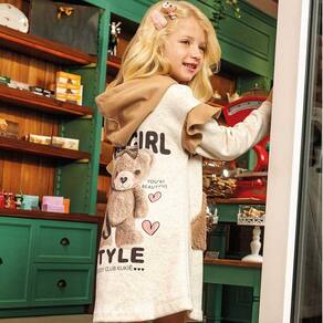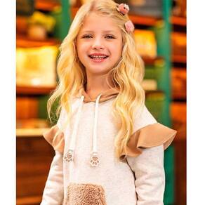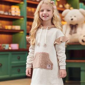 Vestido manga longa com capuz e bolso marca Kukiê é uma peça extremamente sofisticada. Ideal para passeios com sua pequena.