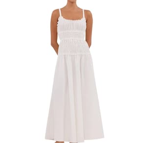 - Design: os vestidos maxi de verão apresentam alças planas elegantes, ajustáveis, decote largo, seções em camadas com babados com detalhes elásticos, bainha fluida, cor lisa. Não apenas são incrivelmente atraentes e adoráveis para mulheres, mas também oferecem facilidade de uso sem esforço, tornando-os fáceis de calçar e descalçar.