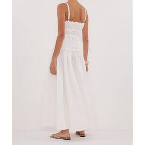 Eahusar Vestido maxi feminino com alças finas, sem mangas, gola redonda, babados, elástico, casual, boêmio, rodado, Branco, P