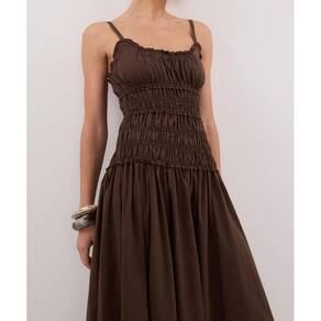 - Estilo: Vestido longo rodado Aline com alças finas, vestido rodado com acabamento de babados, bem estilizado com colar, brincos, saltos altos e clutches ou mantenha casual com chinelos e óculos de sol grandes.