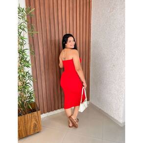 O vestido é um modelo midi, que se estende aproximadamente até a altura da canela. Possui uma modelagem tubinho, que se ajusta perfeitamente ao corpo, realçando a silhueta. A peça é tomara que caia, deixando os ombros e o colo em evidência, e conta com uma fenda lateral na perna, que adiciona um toque de estilo e facilita o movimento. O tecido, canelado oferece elasticidade e conforto. Marca: Não Informado