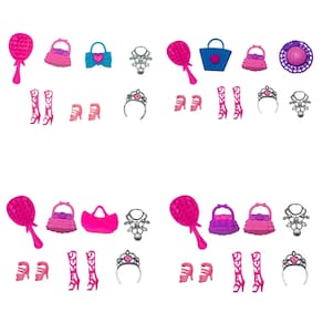 Contém na Embalagem Acompanha 9 vestidos diferentes e acessórios
